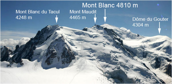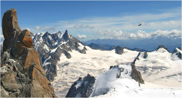 A noter que, de l'aiguille du Midi, 5 Km nous séparent du sommet du Mont Blanc.