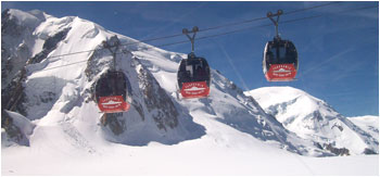 Nous empruntons des télécabines qui nous amènent à la frontière italienne en survolant