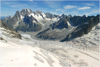 durant plus de 5 Km les glaciers qui s'écoulent du Mont Blanc.