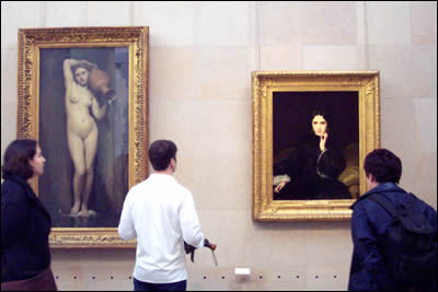 Ingres Je connaissais le tableau de gauche intitulé La Source mais le troublant regard de droite au réalisme photographique nous fascinait. Vous pouvez l'agrandir en touchant le tableau |