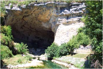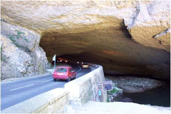 rivière. Une route traverse la grotte. Cette grotte a abrité